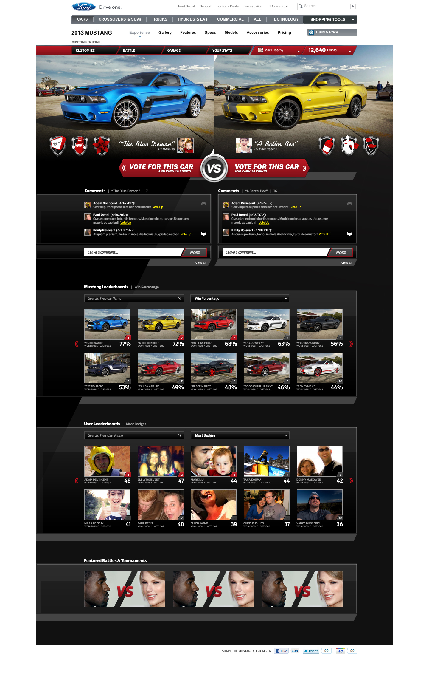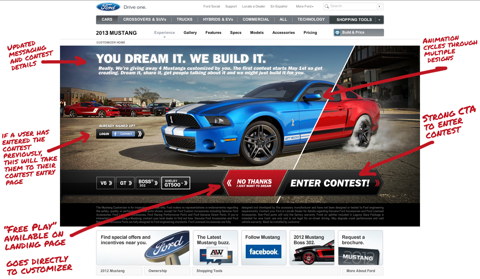Screenshots and workflow diagrams of the new 2013 Ford Mustang Customizer have leaked out over at Mustang Evolution revealing a contest to give away four customized Mustangs. Ford introduced the Mustang customizer back in 2009 as a way for Mustang enthusiasts to customize the new refreshed 2010 Mustang with custom paint colors, backgrounds, wheels and body parts.