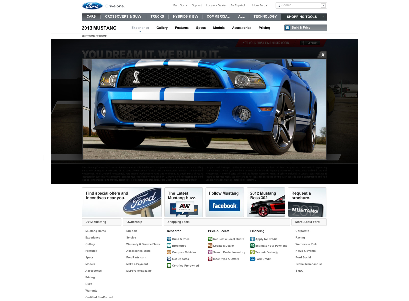 The 2013 Mustang customizer will be the third installment of the widely popular tool for customizing the new incoming model. Details are scarce at this point but the images reveal a May 1st launch date for the customizer. Check out a few screenshots below.