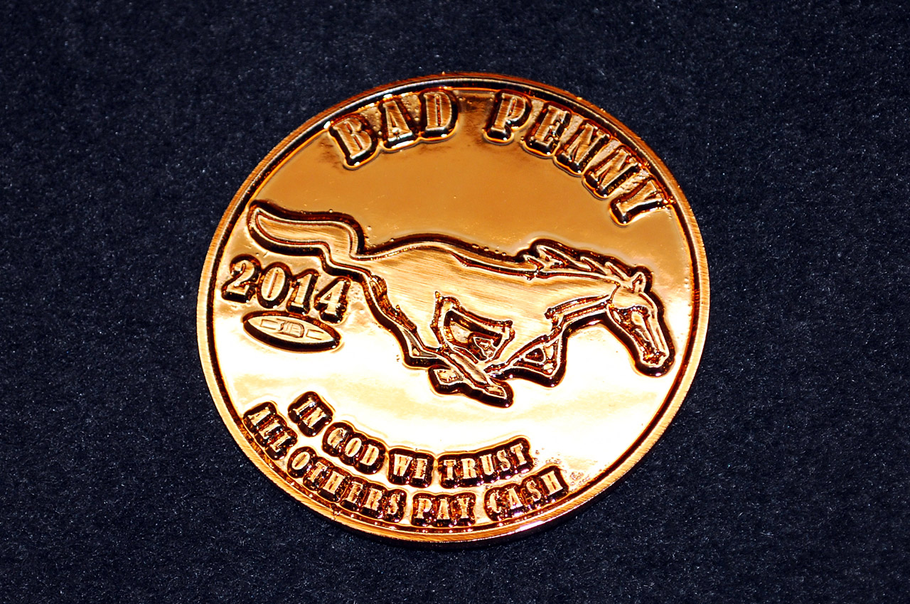 “Bad Penny” wouldn’t be complete without a redesigned interior. A Ford Racing gauge pack was added to keep tabs on what’s going on under the hood. Recaro/Ford Racing seats wrapped in custom Alea leather keep the driver and willing passenger secure. Interior trim accents include color match door inserts with custom made “Bad Penny” inlays. CDC also added a rear seat delete, to maximize space for a Kicker audio tray. Audio enhancements by Kicker include IX amps, QS mid range and L7 woofers. Needless to say, this concept is one “Bad Penny!”