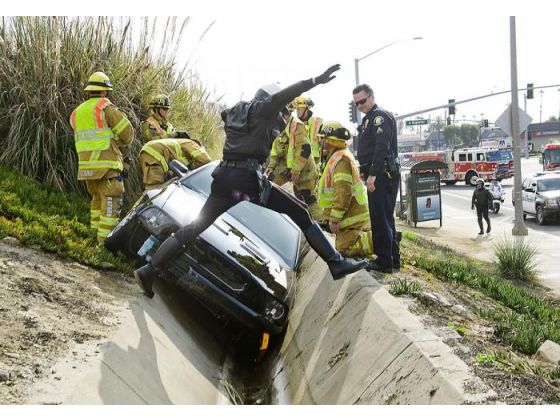 When Newport Beach police were called out to the scene of a wreck involving a black Ford Mustang they got more than they bargained for. The Mustang actually turned out to be a Shelby GT500 and the driver was trapped inside. After firefighters broke the passenger side window the driver was removed from the vehicle and treated for minor injuries.