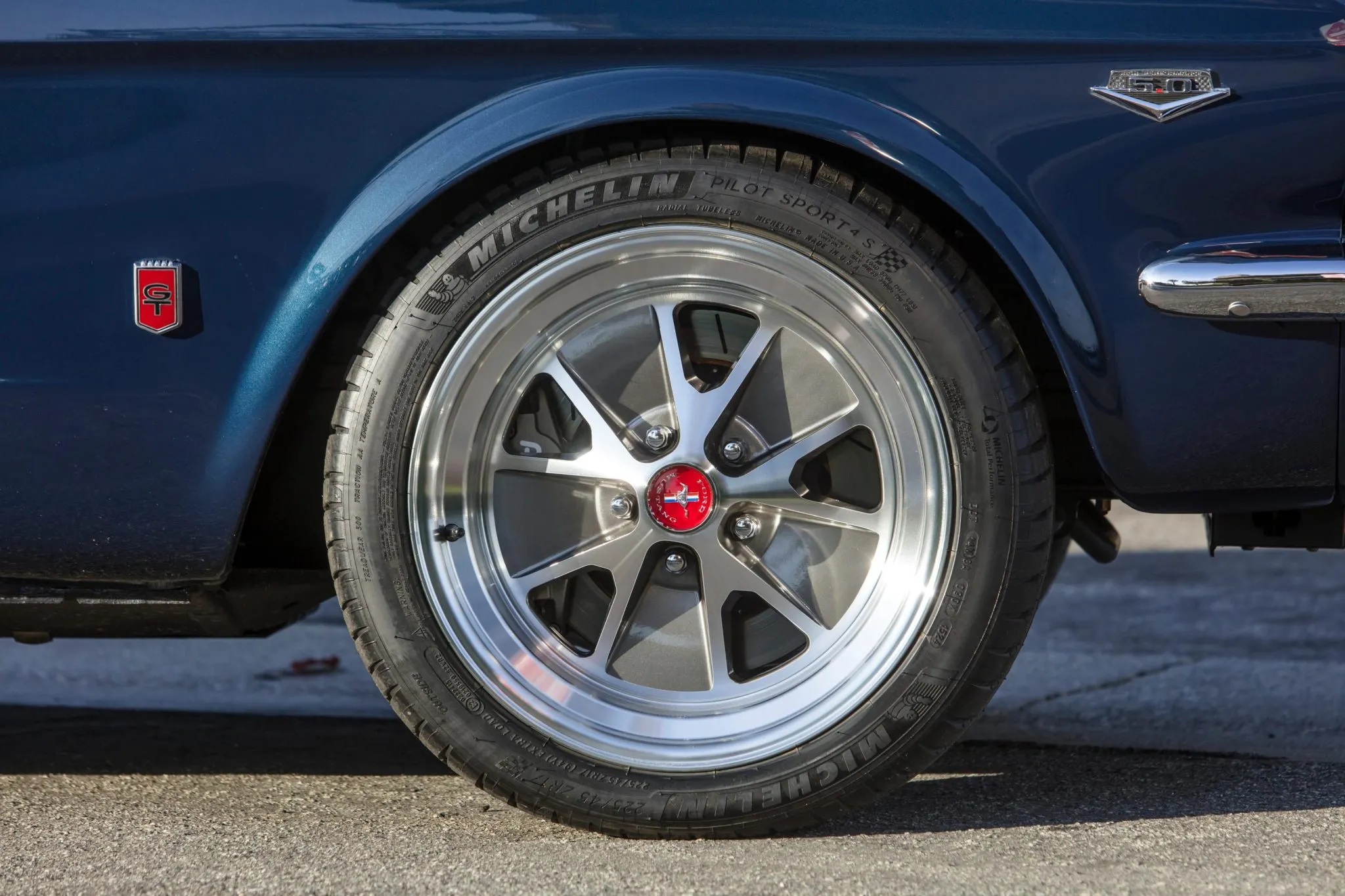 This particular Ford Mustang GT Convertible, built by Revology and completed in 2023, is currently offered for sale on Bring A Trailer. Listed as production number 175 in the Revology registry, the car is finished in Nightmist Blue Metallic and features a power-operated blue soft top, GT badging, and vintage-look 17” alloy wheels with Michelin Pilot Sport 4S tires.