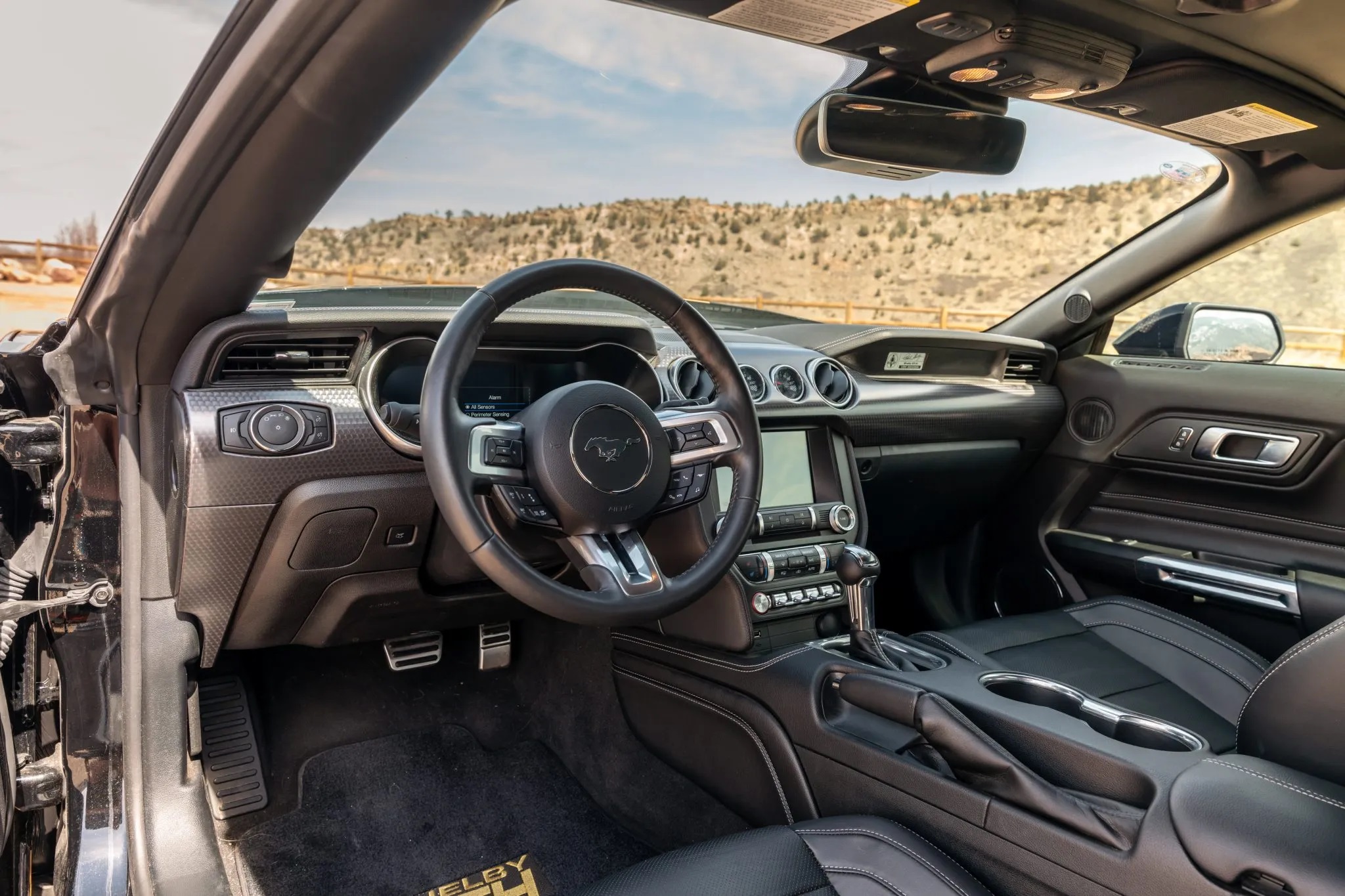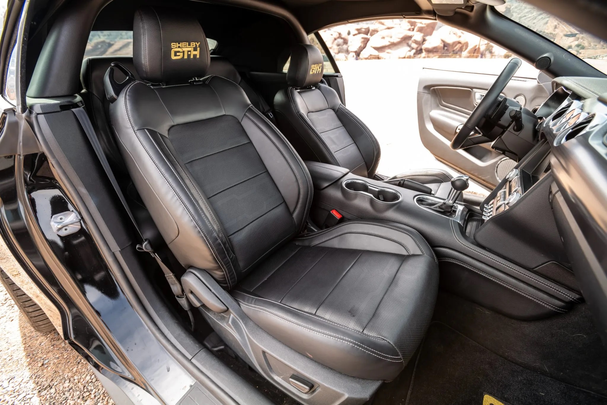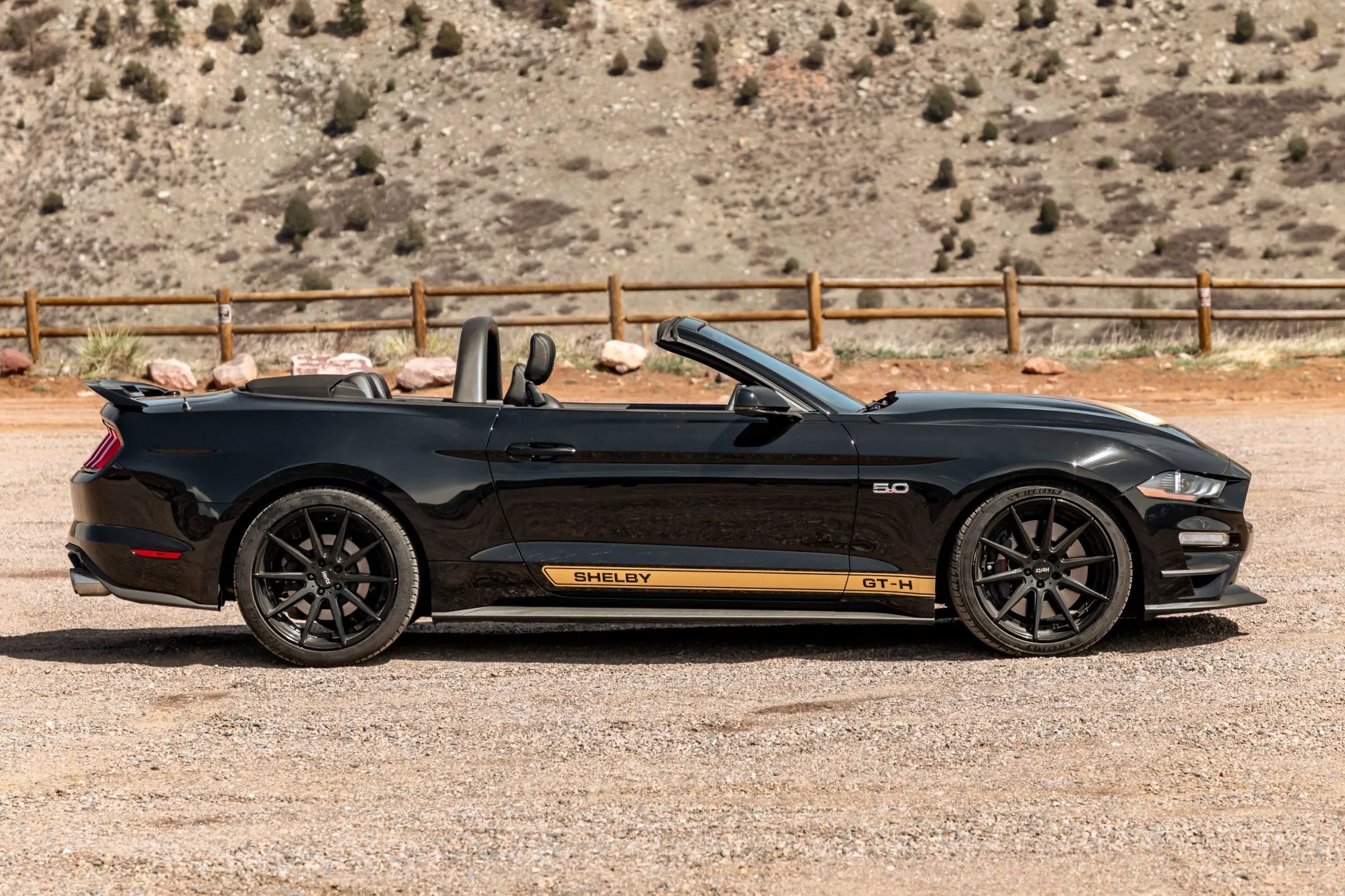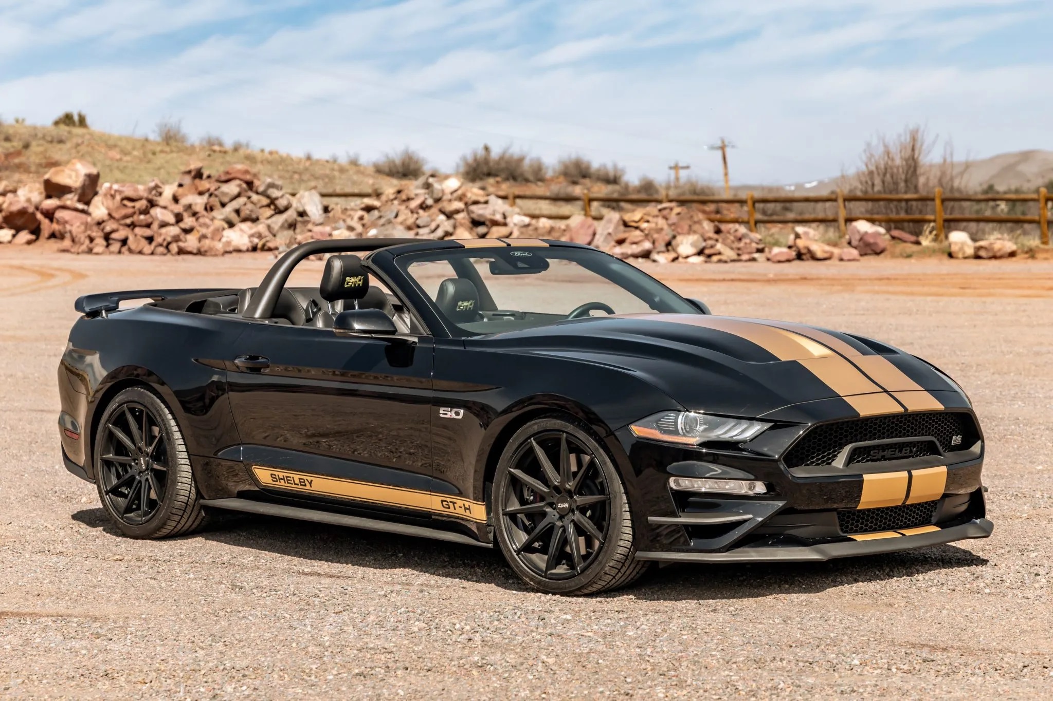Finished in Shadow Black with gold vinyl accents, it’s equipped with Shelby GT-H-specific enhancements, a Borla cat-back exhaust system, and advanced amenities like Magneride damping, adaptive cruise control, and Bang & Olufsen sound.