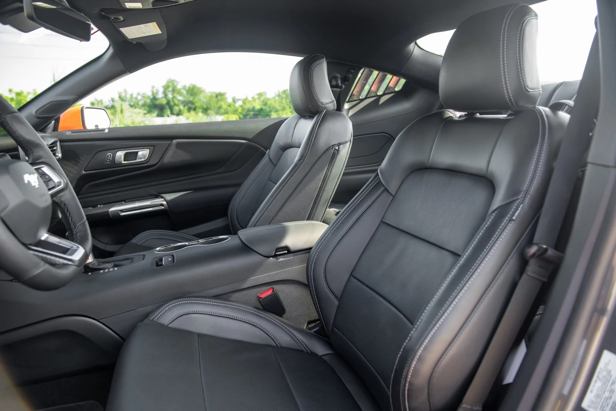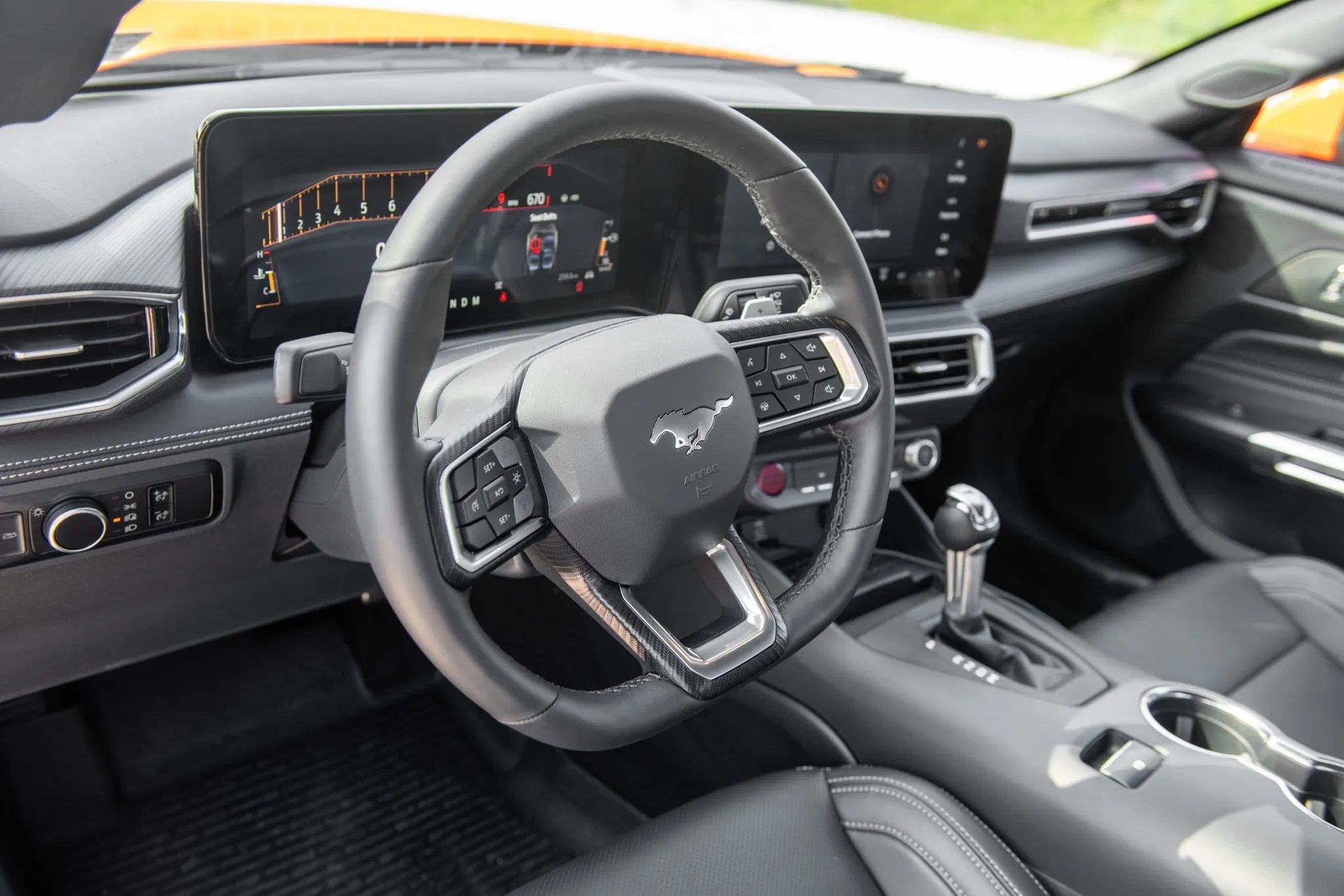 The interior remains mostly stock, featuring Onyx Black leather upholstery, dual-zone automatic climate control, a digital instrument cluster, heated and ventilated front seats, and a SYNC 4 touchscreen infotainment system.