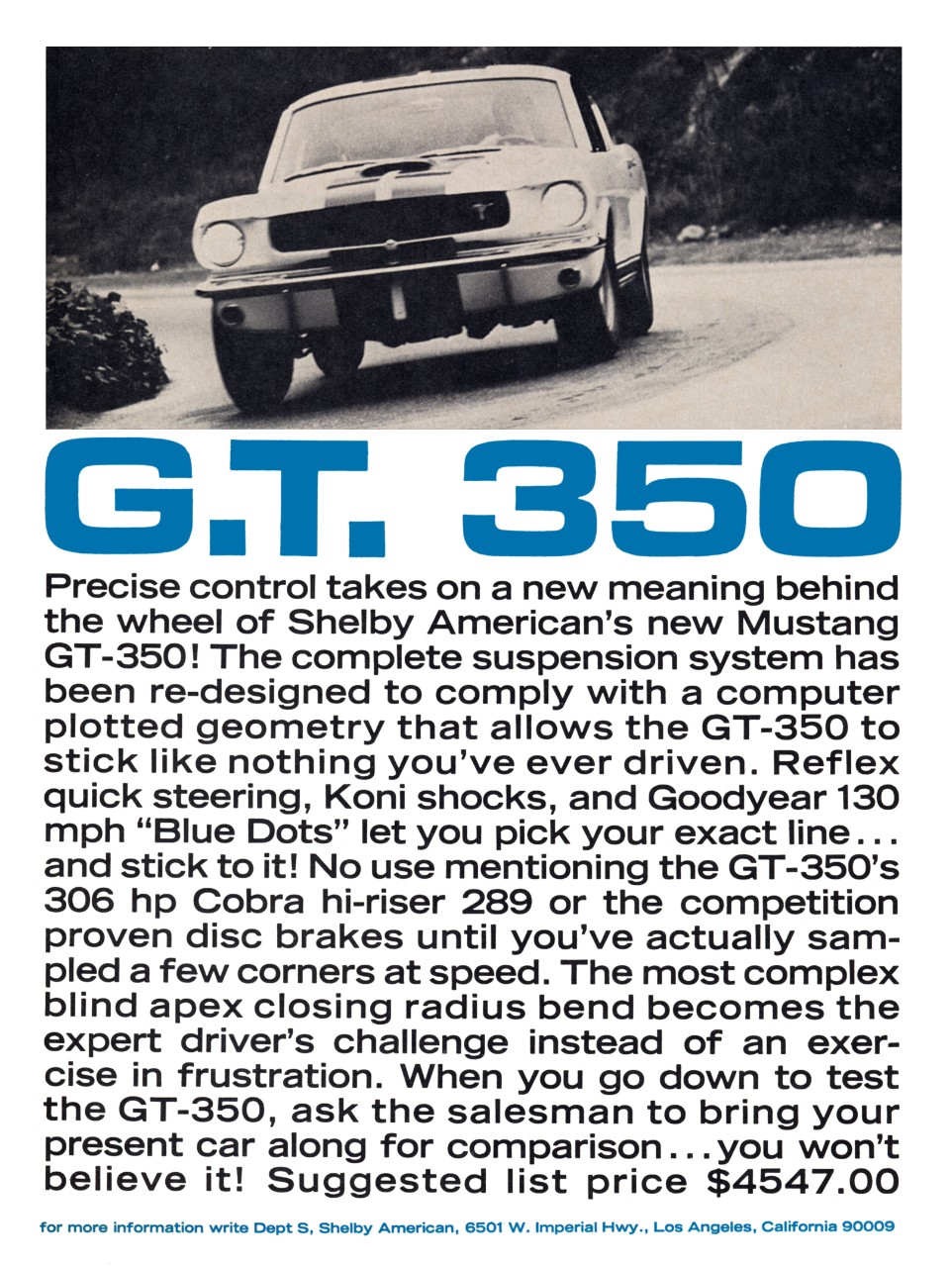After determining 5S003 was in fact supposed to be the very first street-legal GT350, Hovander sold another restored GT350 to Atzbach and bought 5S003. He intended to eventually restore it to the condition it was in when it was first introduced to the public in early 1965 – the way it appeared in that factory ad.