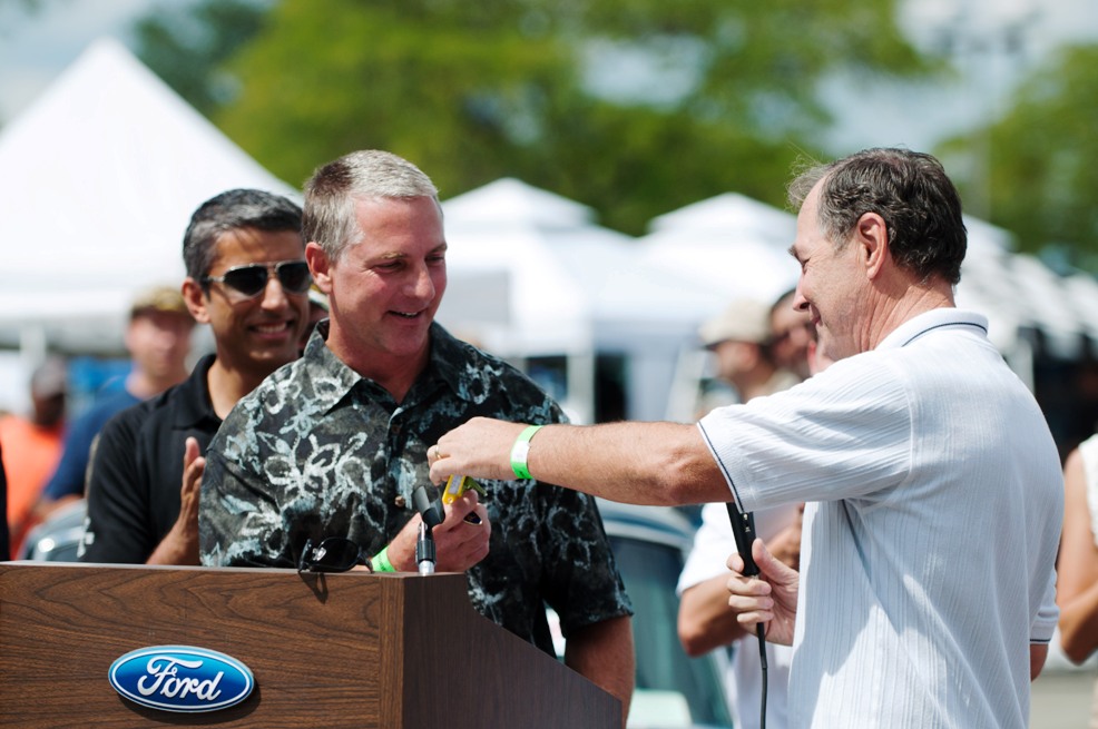 Mr. Millard along with his wife and son accepted the prize package at the award ceremony on Sunday, August 12, at Ford World Headquarters in Dearborn, Michigan during the annual Mustang Memories Car Show. Thousands of Mustang enthusiasts as well as key executives from Ford Motor Company, Henry Ford Health System, WorldCause Foundation, and Dream Giveaway Inc., were on hand to see Mr. Millard receive his two Shelby GT500s. The keys to the 1967 Shelby GT500 were personally handed to Mr. Millard by Kevin Marti, President of Marti Auto Works. The keys to the 2012 Shelby GT500 were personally handed to Mr. Millard by Michael Bannister, CEO Ford Motor Credit and Jamal Hameedi, Chief Engineer, Ford Special Vehicle Team.